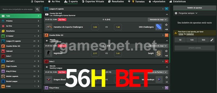 O 56H Bet oferece uma grande seleção de opções de apostas em e-sports com probabilidades competitivas